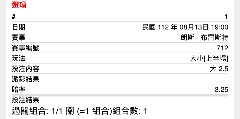 噓 Taiwan007: 上半2.5大1 .92,2000223.138.119.250 08/13 19:29