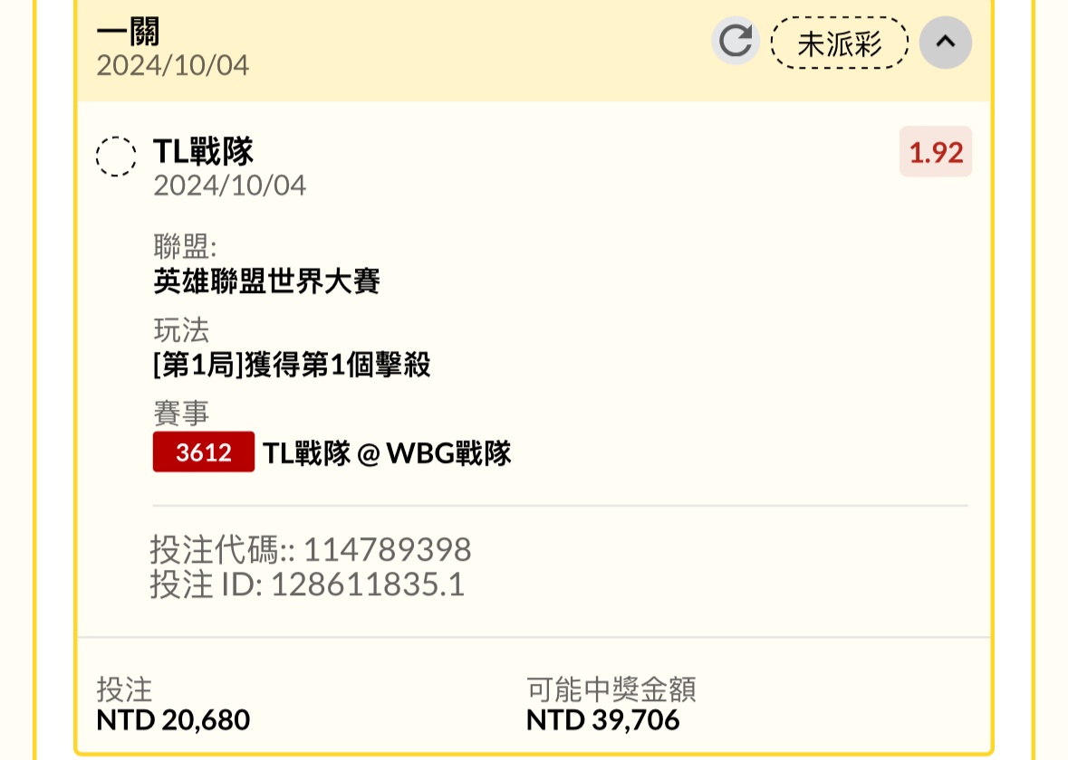推 peter5140: WBG賽前1.32,開場中1.3,ban完1.22 1.200.23.184 10/04 23:11