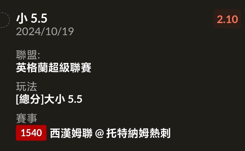 → pandalove: 賽前熱刺3球賠率1.8垃圾 1.200.6.189 10/19 20:04