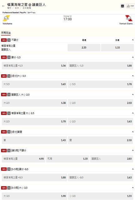 推 momofan: 巨人2.5大 42.70.216.65 10/20 16:33