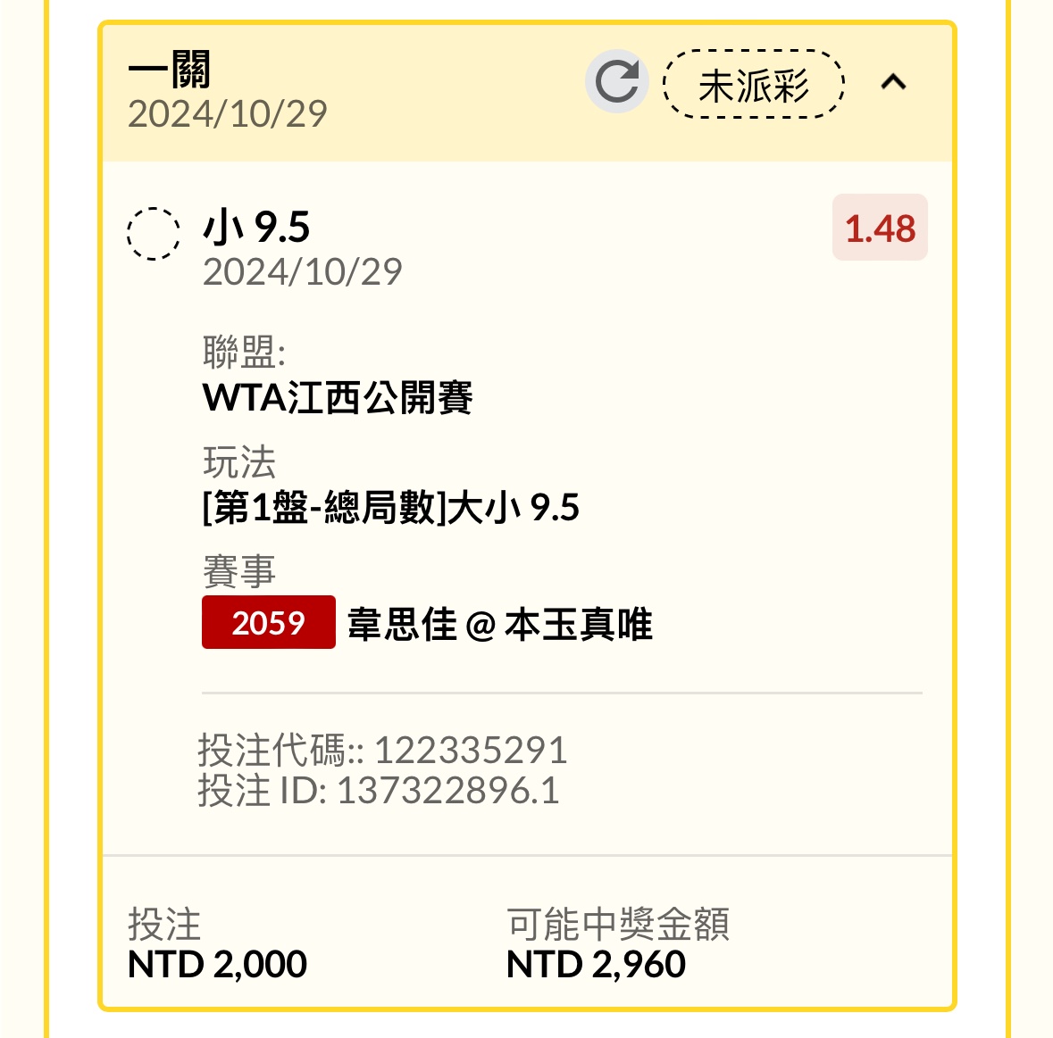 推 eaurouge7: 主衝一下 第一盤2.6 看中國人這麼有喔 1.200.51.11 10/29 16:39