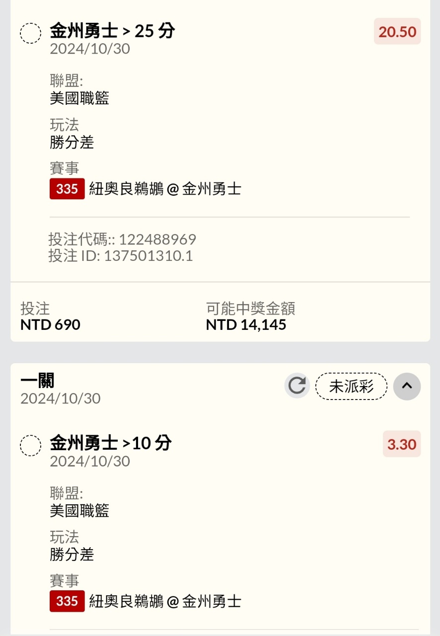 推 roywen: 串關買勇士上半大,看起來要公益了 27.52.103.87 10/30 10:28
