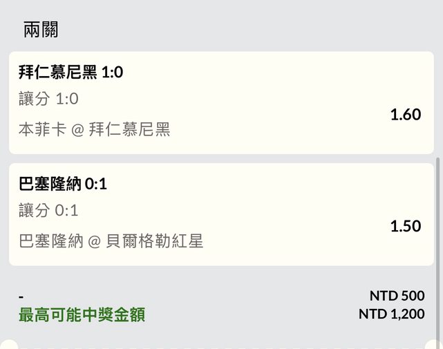 二串一,拜仁巴塞救救我QQ