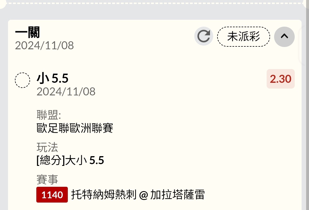 Alexchen0704: 阿斯塔納破蛋 羅馬2.5大 熱刺4+111.250.225.134 11/08 01:47