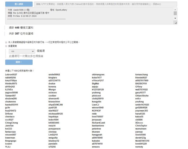 ※ 文章網址: https://pttbestweb.org.tw/SportLottery/M.1731250205.A.123