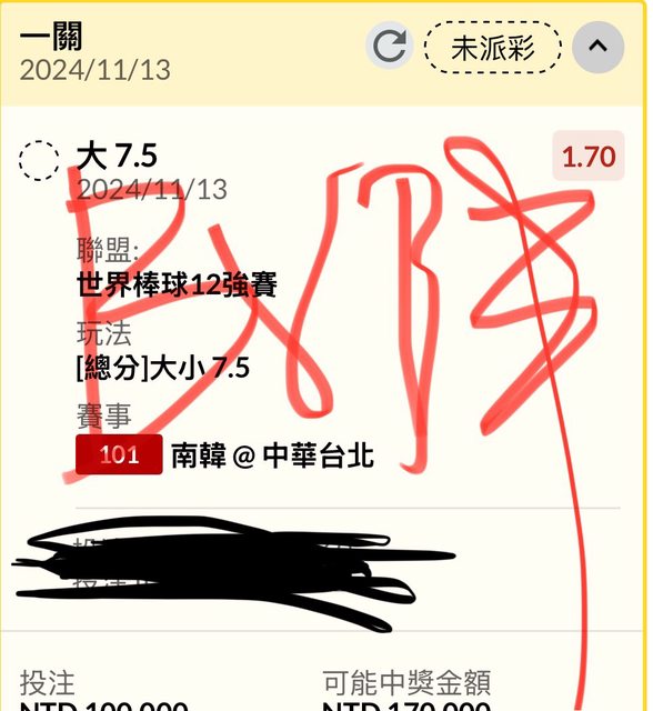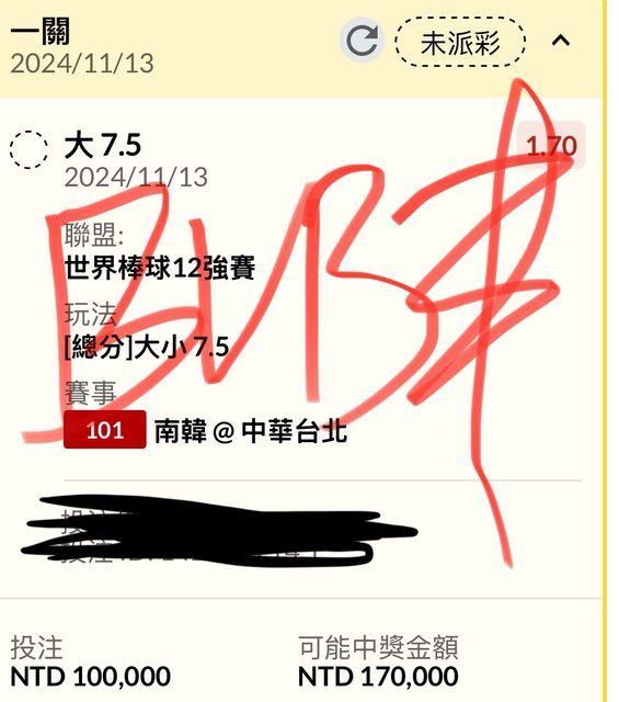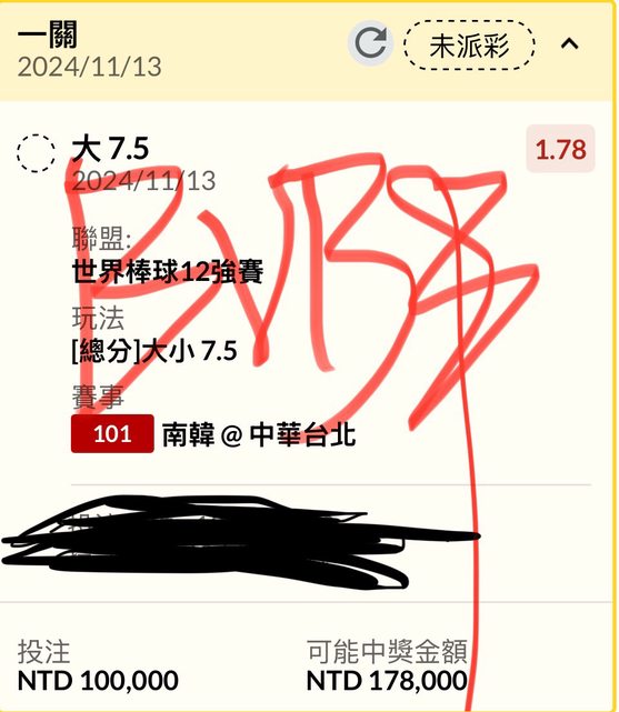 ※ 引述《bvbin10242 (bvbin)》之銘言: : 先恭喜賽前跟到7.5大的朋友,剛剛有看到有人說投注站阿伯下70萬小,各位別怕,我下77萬大,至少各位再買大的路上不孤單,別怪孬剛降賠,是我在車上XD,這邊我會麻煩小幫手再抽出100杯星巴克跟大家分享,各位要有信心啊,下次看到70萬小阿伯的時候記得跟他說,阿伯 捐!!! : (抽獎資格為live貼文底下留言者) : 非空氣單: : https://i.imgur.com/KtmbSiR.jpeg