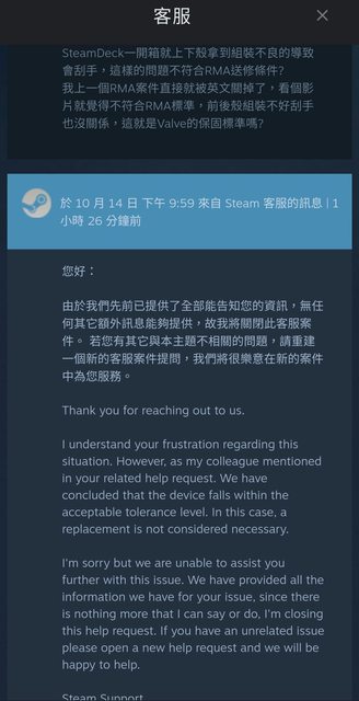 是明顯RMA問題),要不滿意退費也是前幾天就要決定,我等九個月看Steam Deck內部都改
