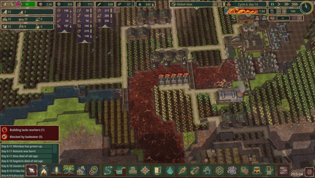 由於追加副作用的關係,本來乾旱只是停產停水,一波壞水會讓食物全部清場,食物的存量與地形導流就更需要策略考量