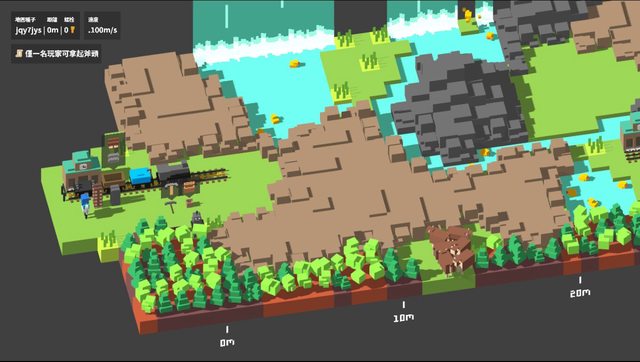然後把木頭跟石頭合成鐵軌可以讓火車前進