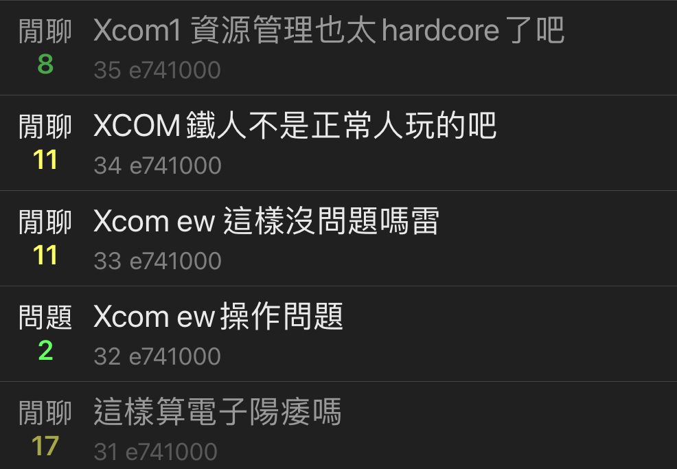 j1551082: 四篇了,下一篇「xcom的基地怎麼那麼麻煩」,我都幫你想 03/01 10:39