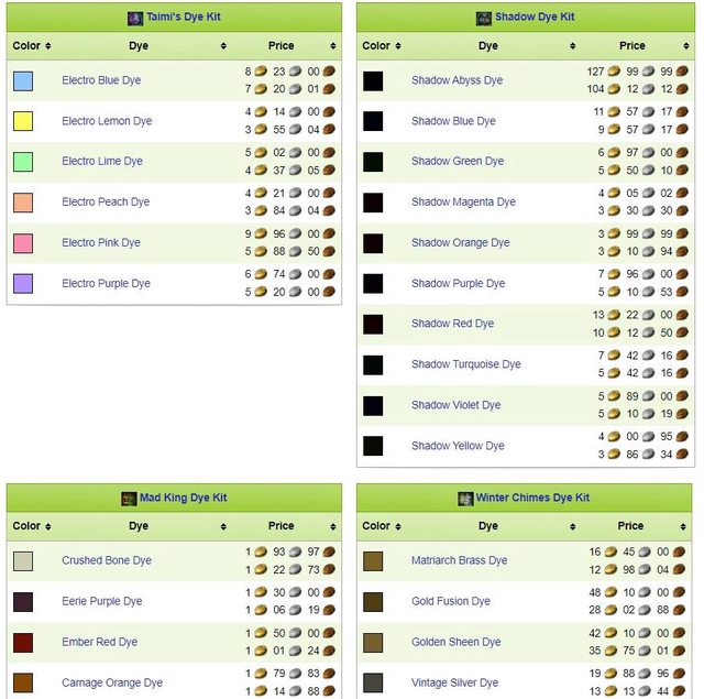 這些染料從幾金到破百金的都有