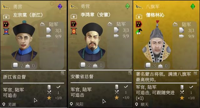 而清軍初期則是各種debuff,綠營軍隊不能離開自己省分,北方精銳不能調動,