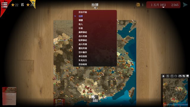 遊戲每回合是一個月,回合中有數個階段,依序執行完畢後,換另一方行動。