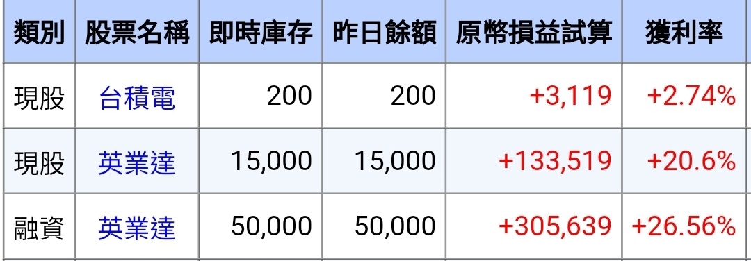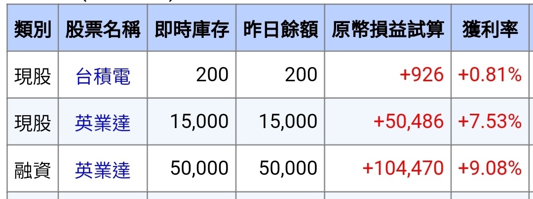 markg555 : 沒啥好解釋的,英業達今天秒填息,我股利價差都賺 07/12 22:00