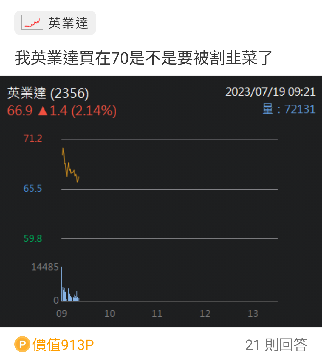 推 Crushredkiss: 69.9敢買 67.1敢買 63不敢買 07/19 13:01