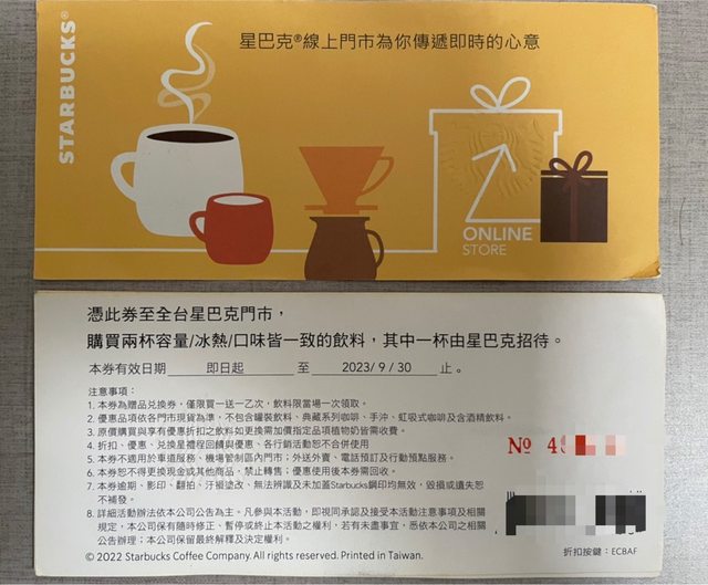 物品名稱:星巴克好友分享優惠卷*4