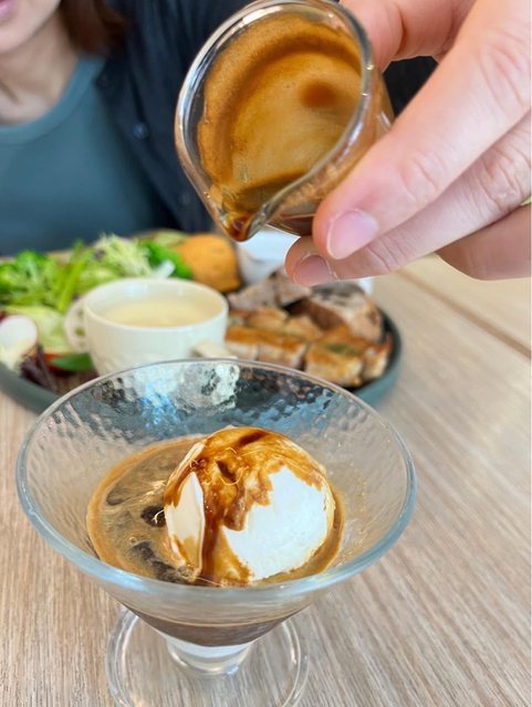 再給一小小杯濃縮咖啡,慢慢的淋上去~