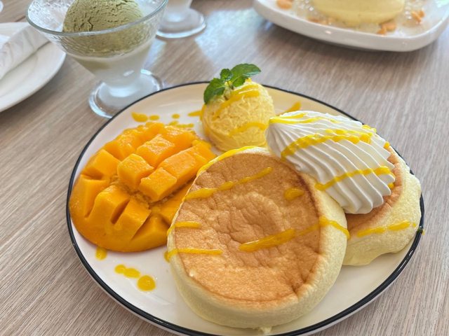 義式冰淇淋水果厚鬆餅,這天搭配的是芒果