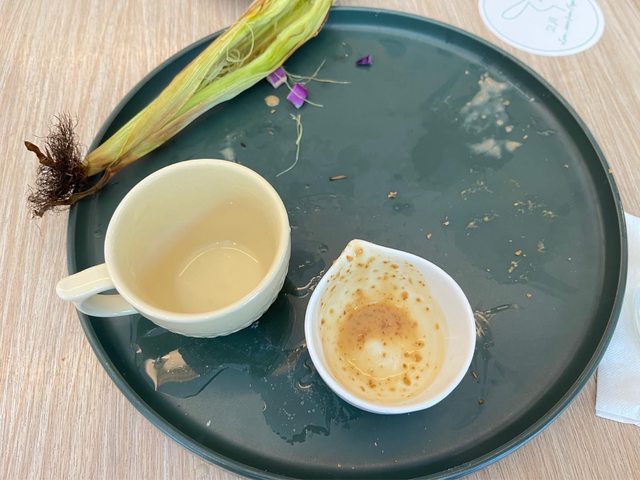後來沾玉米濃湯喝就很完美