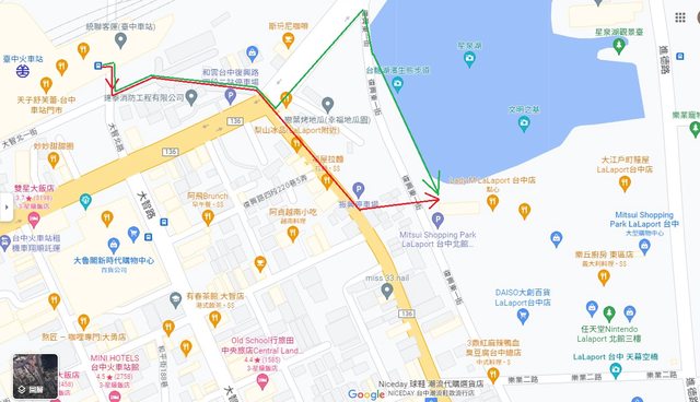 推 poi96300 : 紅線比較短但是沒有遮蔽物 比較熱 藍線有高架遮蔽07/25 11:40