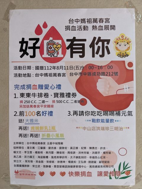 標題[資訊] 萬春宮8月捐血資訊