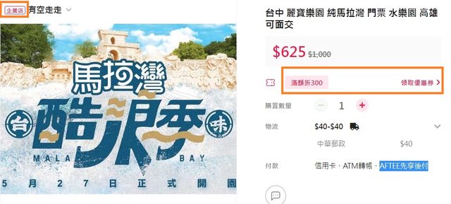 如何便宜購得台中麗寶樂園馬拉灣門票