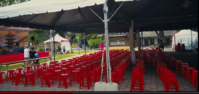3.在應該是看忍者秀的地方吧,搭了蓬子,擺了椅子,紅色塑