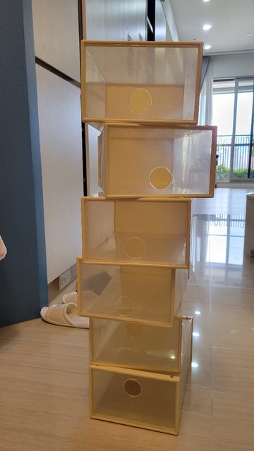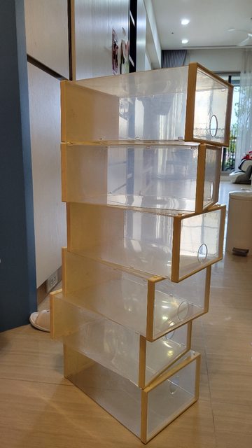 物品說明:需自行DIY組裝的透明塑膠鞋盒,有使用痕跡,需自行清潔。