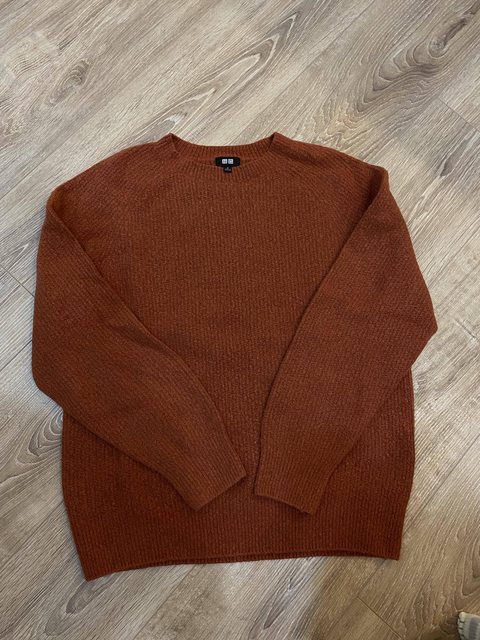 2.uniqlo 3D織法 柔軟舒膚圓領針織衫 棕橘色M號 原價990 售450元
