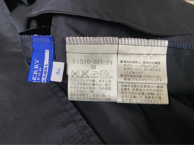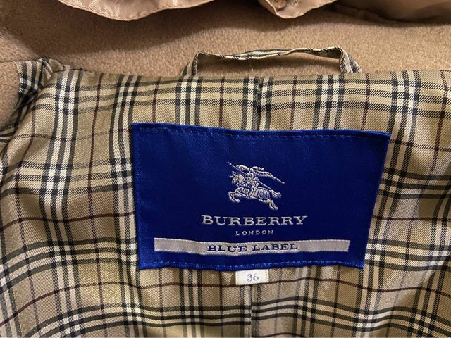 38號 九新 已送乾洗 75%毛 日本製 這是屬於比較輕薄的毛衣 拿起來很輕 類似小羊毛的感覺 但穿起來很暖和 袖子上有釦子 可以將袖長捲起變 4.Burberry blue label 經典羊毛大衣 4998含店到店運費(可全家 萊爾富 OK 取貨)