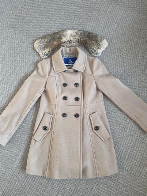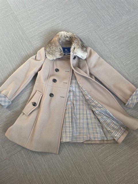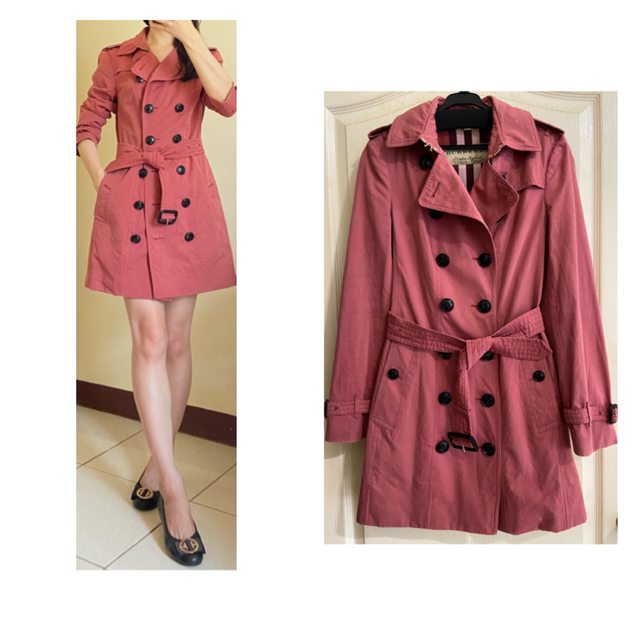 36號 穿著少於10次 很新 已送乾洗 毛90% 毛領是兔毛 很柔軟 有別於一般市面 毛領可拆 袖子可反摺 每顆釦子都有加強釦固定 內裡是經典格紋 5.Burberry 玫瑰粉中長風衣 7998含店到店運費(可全家 萊爾富 OK 取貨)