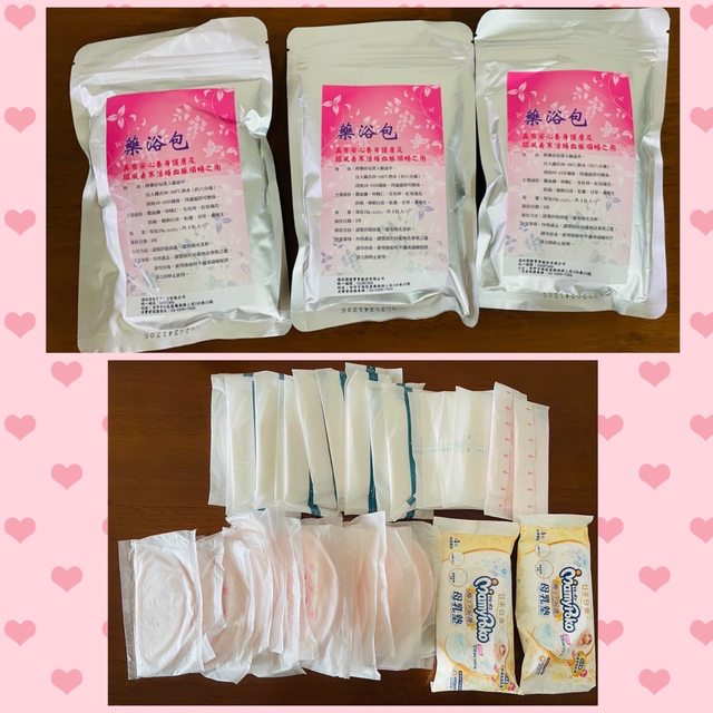 藥浴包一袋裡頭有五包,有三袋,45片溢乳墊,共200元