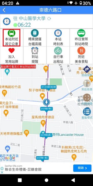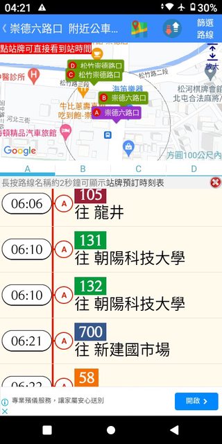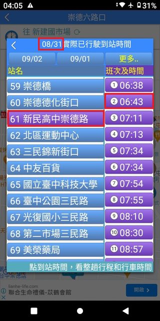 但在35~43分這之間,卻忽視錯過了發車點近在咫尺且6:40穩定發車的132號。