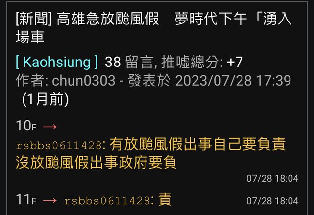 → return517 : 不該放?所以你覺得“該放”的颱風假”是怎樣? 09/04 15:08