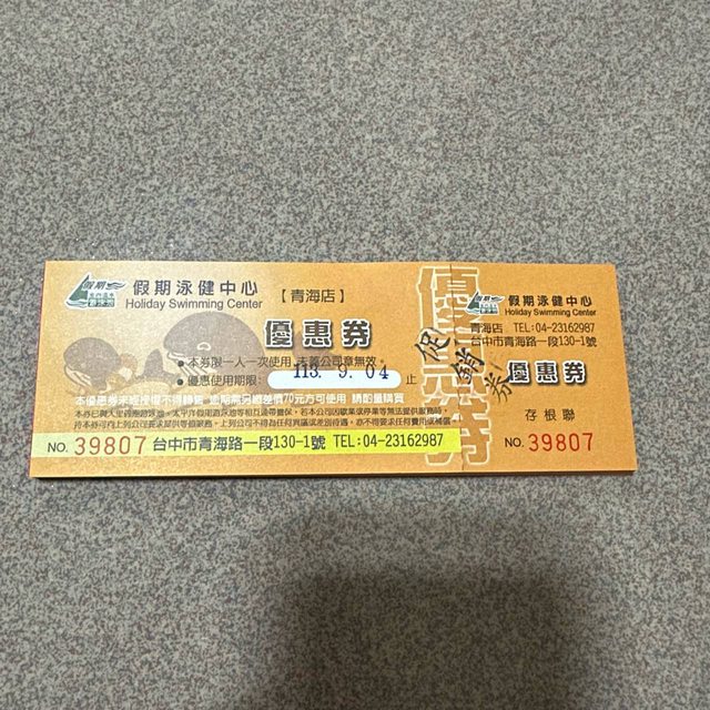 標題[交易] 西區/西屯區/假期青海店游泳票券