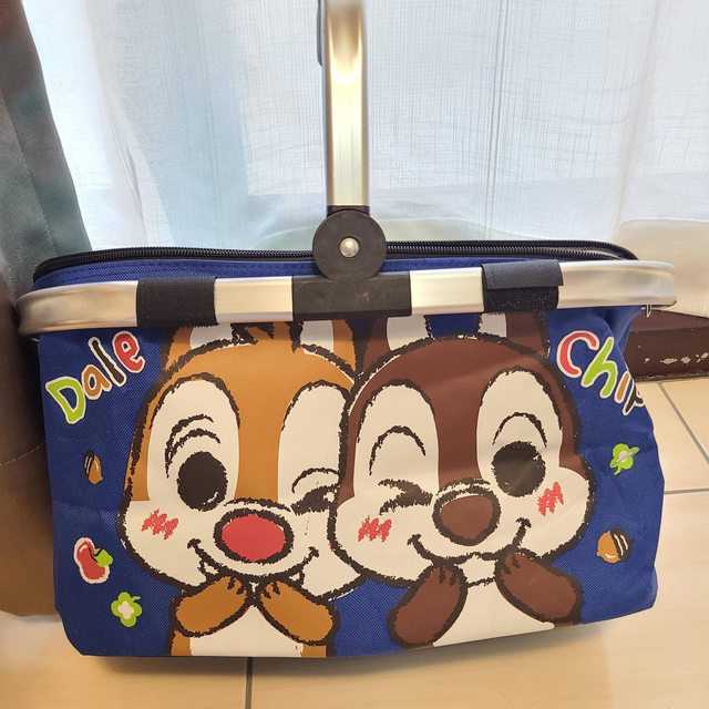 4.全新迪士尼奇奇蒂蒂野餐籃$150 尺寸長40、寬25、高23、提把高約18(公分) 材質:外層尼龍滌綸、內部鋁膜保溫層、鋁合金框架、可摺疊、鋁框可拆、底部有防磨釘