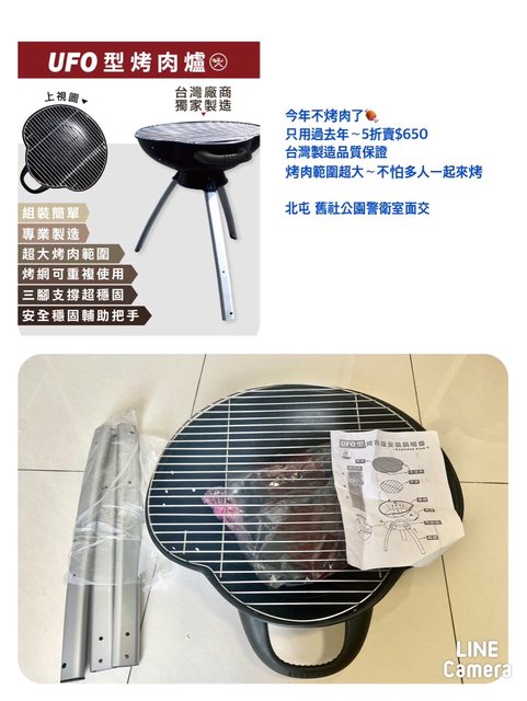 物品B/價格 UFO型烤肉爐 半價出售$650
