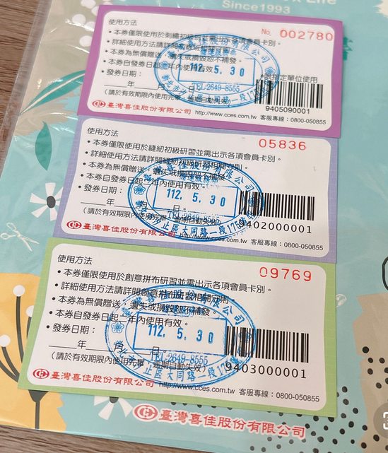 買新縫紉機贈送的上課券
