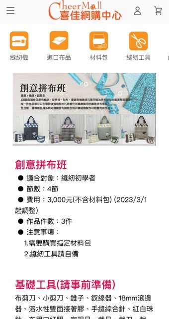 縫紉班:4堂課 共4個包