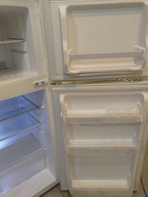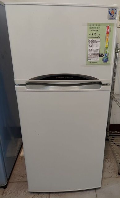 三洋128公升雙門小冰箱 尺寸55 x 48 x 106公分,使用時間約三年,附一個小製冰盒