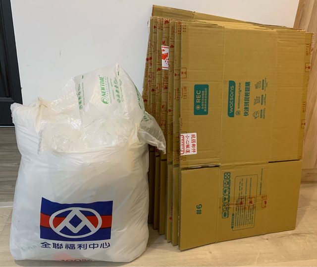 今天下午3點前 紙箱跟包材可全部拿走再來信