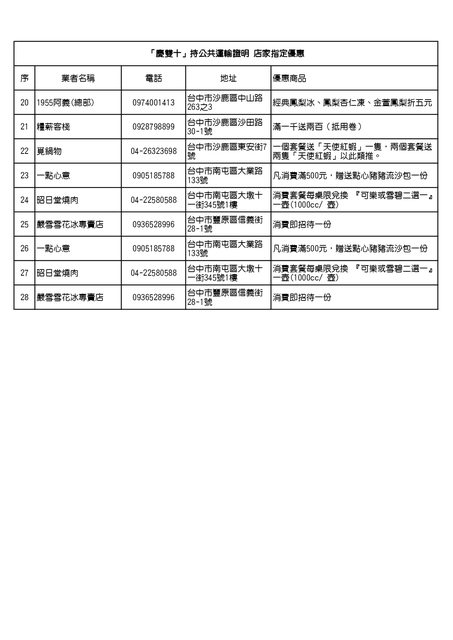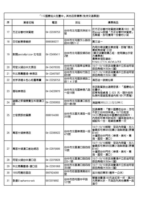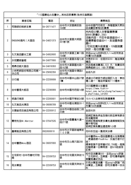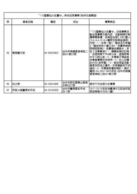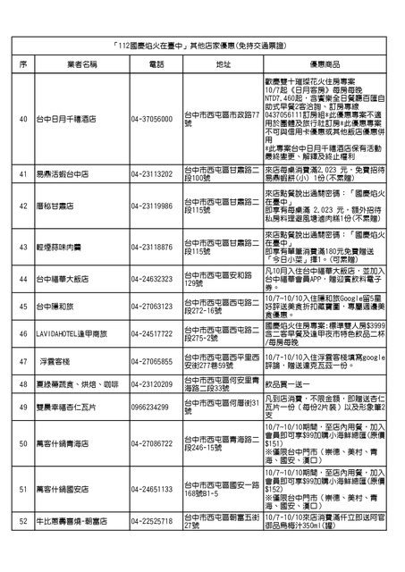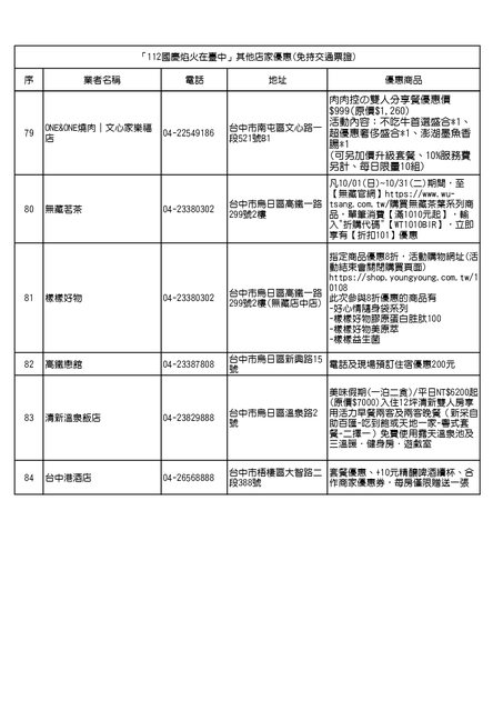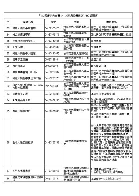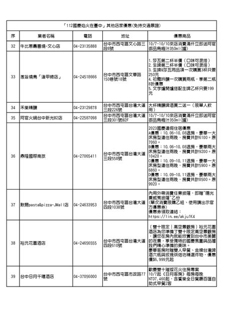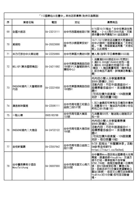 「112 國慶焰火在臺中」其他店家優惠(免持交通票證)
