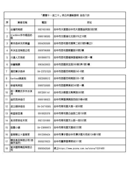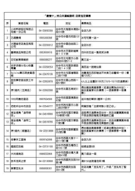 「慶雙十」持公共運輸證明-八折及店家優惠