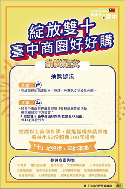 10/6-7展開,於經發局臉書指定文章下按讚留言,可於17處攤販集中區領取限量50元
