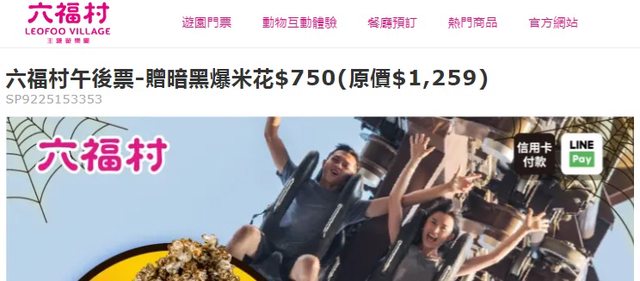 在六福村全園區交易,現場購買午後票(13:00入園)$750。