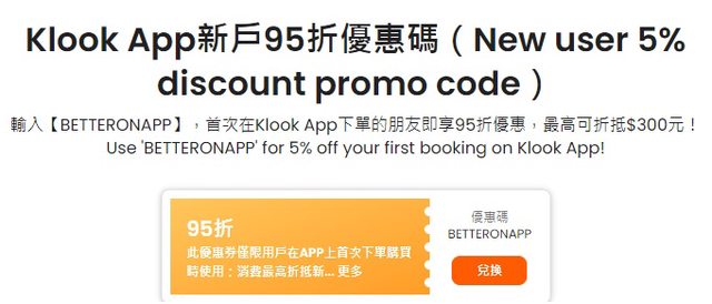 除了klook給的app首購95折優惠