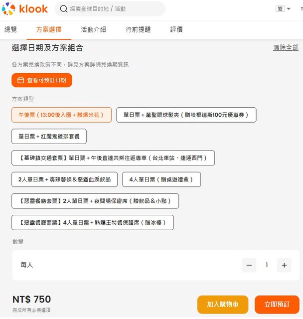 買午後票(13:00入園) $750 加贈1份贈暗黑爆米花,有信用卡或Line Pay折扣。