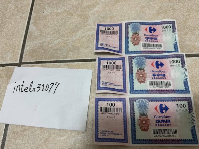 物品名稱:家樂福提貨卷面額2100(1000X2,100X1)