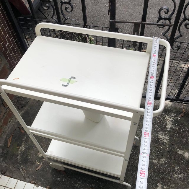 推車架原本是拿來放置待洗衣物,有幾處有使用的磨損,但大致上看起來完好,功能正常。