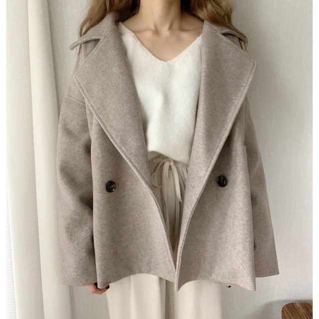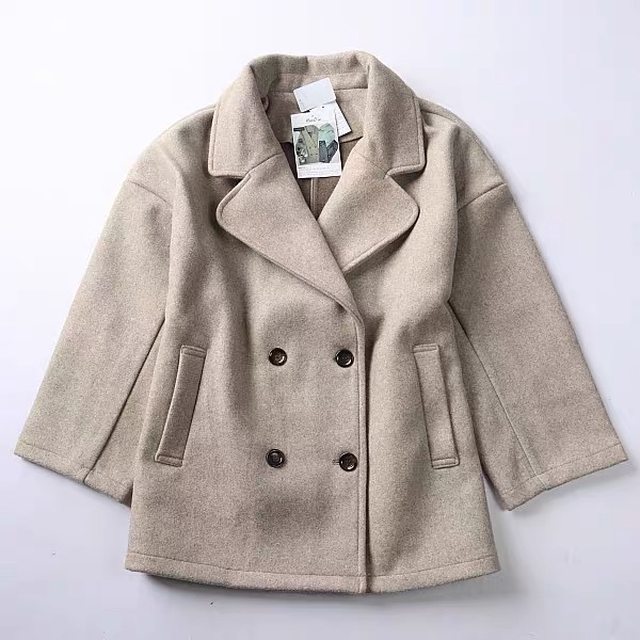 ===== [交易] 物品:全新日貨燕麥色雙排扣短外套 吊牌未拆 含羊毛6% M碼,但應該L能穿 價格:300元 實照: